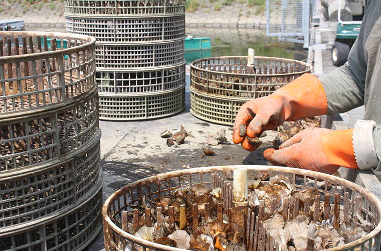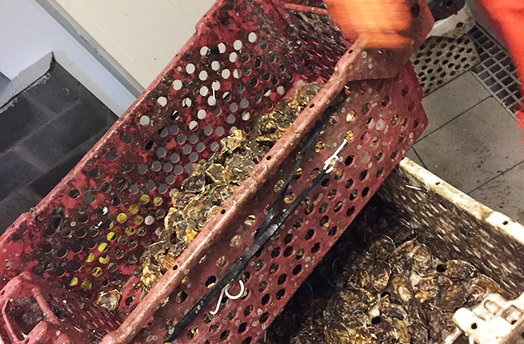 Tijdens het groeiproces is het sorteren van de oesters een belangrijk werk. Sorteren naar grootte maar ook triage van dode/slechte schelpen en levende.